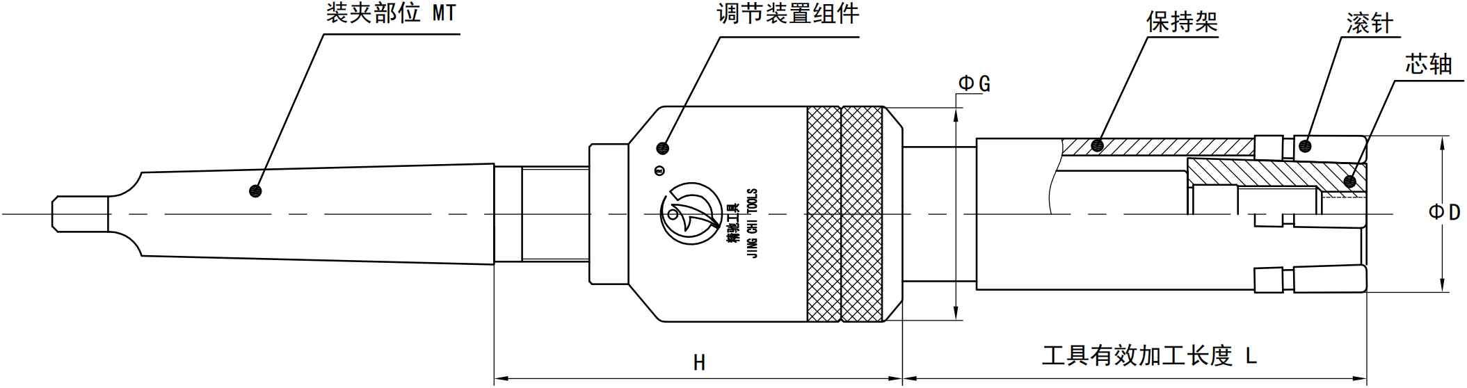 注:孔徑Φ26-68的滾壓刀有效加工長度從B檔開始柄部標配MT3,如需其他型號規(guī)格需定做。加工孔徑Φ40以上的滾壓刀,由于調(diào)節(jié)組件的外徑比加工孔徑小,可通過加長柄部尺寸的方法增加加工長度。